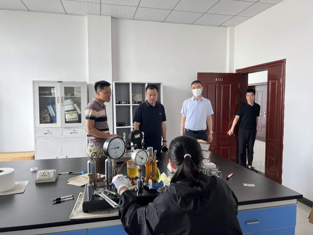 在孫衛(wèi)軍的陪同下,易坤一行實(shí)地考察了潛江分院燃?xì)獗?、出租車?jì)價(jià)器、溫度、壓力、節(jié)能檢測(cè)等重點(diǎn)實(shí)驗(yàn)室和大容量油罐車檢定項(xiàng)目現(xiàn)場(chǎng)。座談會(huì)上,易坤聽(tīng)取了孫衛(wèi)軍關(guān)于潛江分院2022年以來(lái),加強(qiáng)支部建設(shè)、標(biāo)準(zhǔn)建設(shè)、隊(duì)伍建設(shè)、計(jì)量服務(wù)體系建設(shè)等方面情況的匯報(bào)。