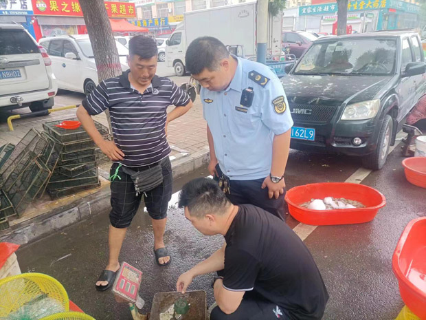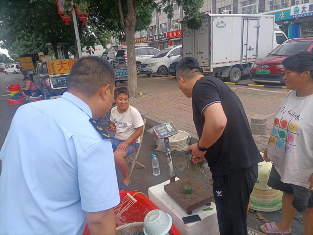 執(zhí)法人員對商貿(mào)城及周邊攤位、大型超市等開展計量器具專項檢查,重點關(guān)注水產(chǎn)、熟食、蔬菜等“缺斤少兩”易發(fā)點位,檢查經(jīng)營業(yè)戶使用的計量器具是否在檢定合格有效期內(nèi)、有無使用“作弊稱”等問題。截至目前,共檢查經(jīng)營主體18戶次,涉及計量器具20余臺,暫時未發(fā)現(xiàn)計量作弊違法行為。