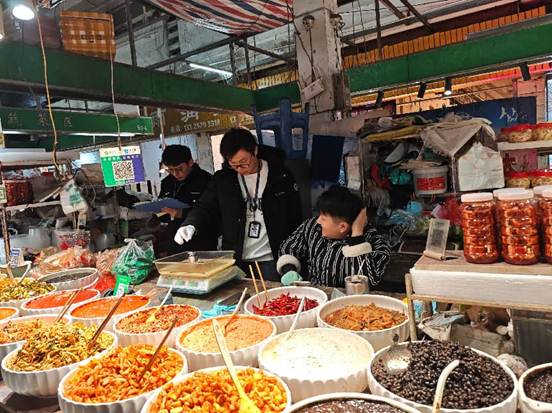 行動(dòng)期間,該局聚焦重點(diǎn)領(lǐng)域精準(zhǔn)發(fā)力,采取“暗查暗訪”方式開(kāi)展檢查,直插市場(chǎng)交易一線,將水產(chǎn)、肉類(lèi)、鹵菜等高投訴領(lǐng)域列為監(jiān)管重中之重。強(qiáng)化協(xié)同配合,股所隊(duì)聯(lián)動(dòng)對(duì)轄區(qū)內(nèi)4家集貿(mào)市場(chǎng)、3家金店、鹵菜店20余家、水果店18家、各類(lèi)超市及零食店50余家開(kāi)展計(jì)量器具監(jiān)督檢查,在檢查中發(fā)現(xiàn)某鹵菜店涉嫌使用不合格電子計(jì)價(jià)秤一臺(tái),已立案調(diào)查。
