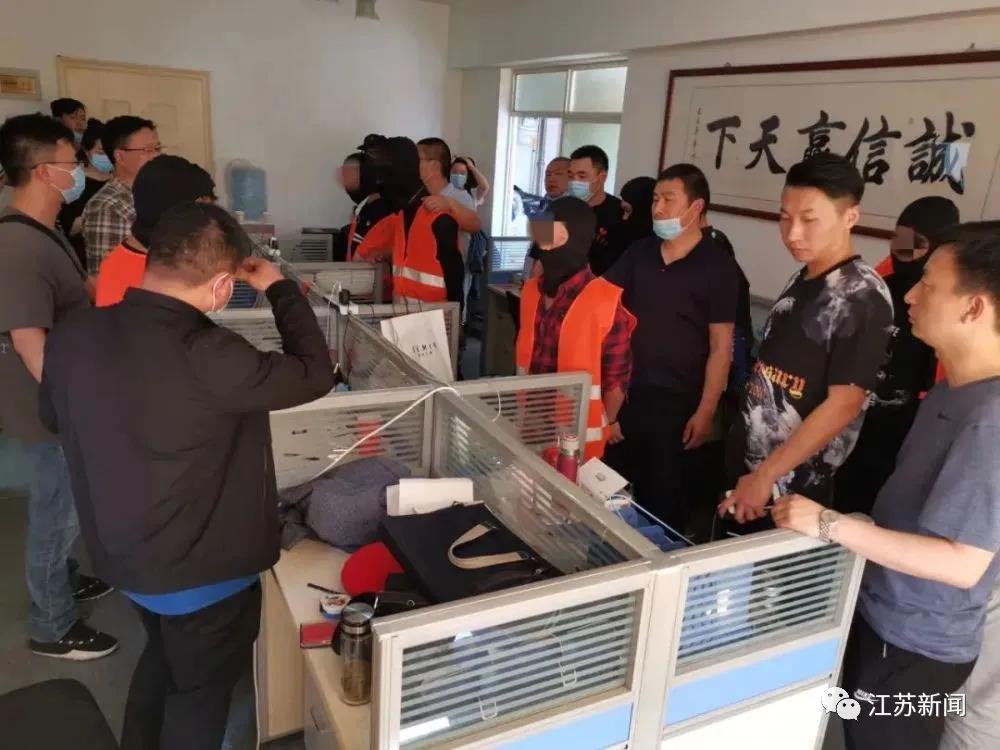 5月12日,姜堰警方組織20余名警力奔赴兩地實(shí)施抓捕,經(jīng)過多次踩點(diǎn)偵查,民警最終摸清了嫌疑人的數(shù)量和三處辦公地點(diǎn),并在當(dāng)?shù)鼐降拇罅χС窒拢慌e抓獲了包括黃某在內(nèi)的11名犯罪嫌疑人,現(xiàn)場(chǎng)扣押手機(jī)、電腦等物品百余件。