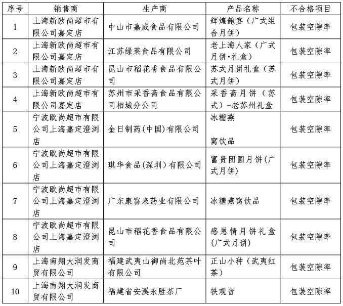 本次檢查抽取轄區(qū)內(nèi)上海新歐尚超市有限公司嘉定店、寧波歐尚超市有限公司上海嘉定澄瀏店、上海南翔大潤發(fā)商貿(mào)有限公司、上海嘉定樂購生活購物有限公司菊園分公司這4家大型商超的30件包裝商品。