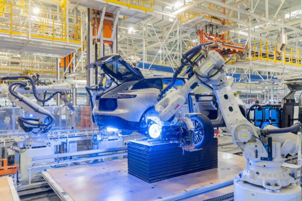 在嵐圖云峰工廠的總裝車間,一條條生產(chǎn)線正加速生產(chǎn),將零部件組裝成整車。這里沒有傳統(tǒng)車間的嘈雜與雜亂,取而代之的是自動化機械臂的精準(zhǔn)運轉(zhuǎn)和數(shù)字化大屏上跳動的實時數(shù)據(jù)。