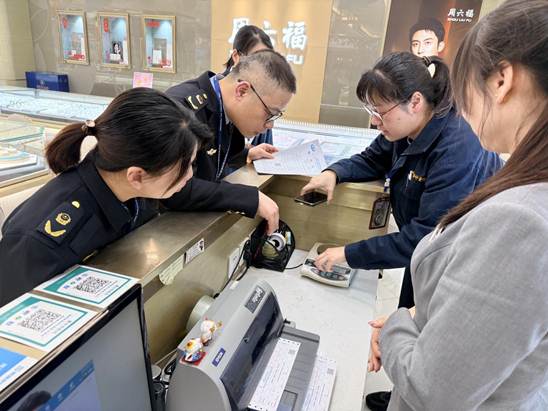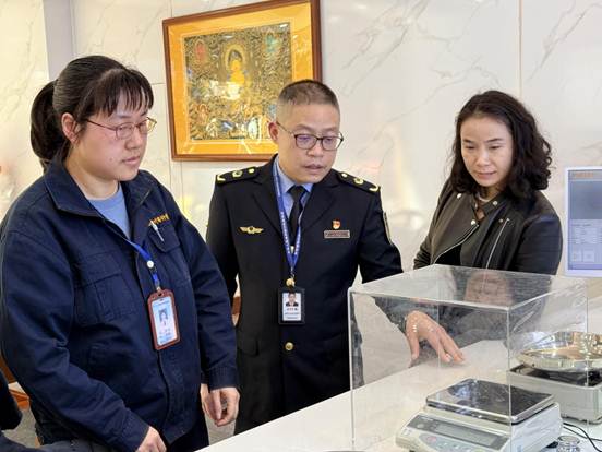 對各店鋪在用的電子天平進行示值誤差、重復性等關鍵指標檢測。對檢定合格的設備,現場張貼合格標志;對存在計量偏差的設備,現場指導經營者進行調試校準,對無法調試合格的責令立即停用。同時,工作人員結合黃金消費特點,向經營者詳細講解電子天平強制檢定要求及按時檢定的重要意義,并就設備日常維護、校準及規(guī)范使用進行現場指導,督促其切實履行計量主體責任,堅守誠信經營底線。