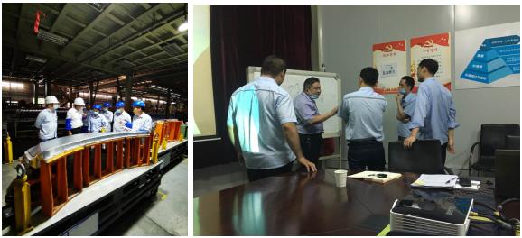 【圖2:張愛華老師在整車沖壓車間現(xiàn)場審核、孫秀良老師在發(fā)動(dòng)機(jī)同奇瑞公司人員充分溝通】